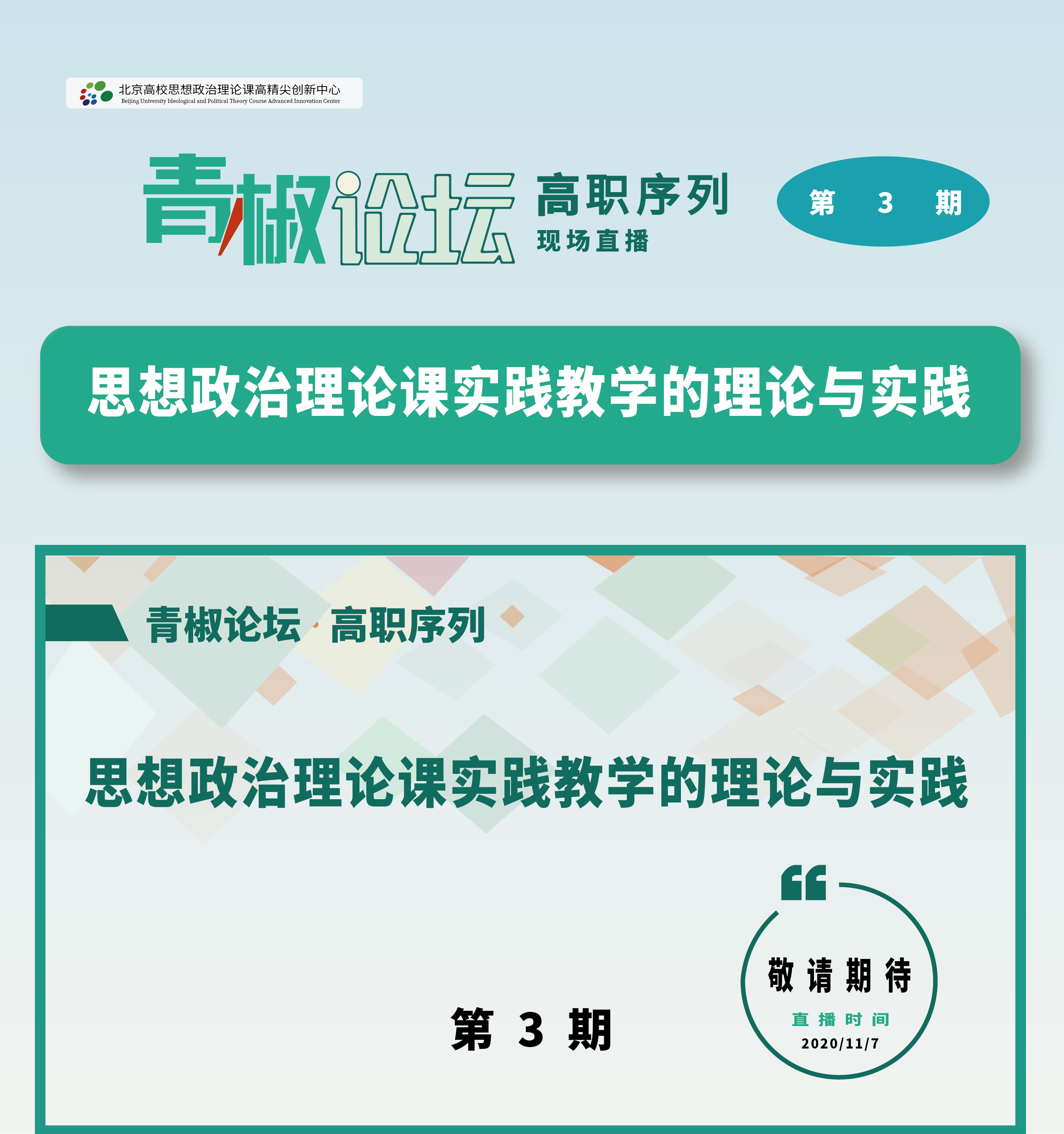 为了给老师们提供良好的研讨交流机会,在北京市委教育工委、北京市教委指导及全国高校思想政治理论课教师网络集体备课平台支持下,北京高校思想政治理论课高精尖创新中心、全国高职高专党委书记论坛主任委员会和全国高职高专院校思想政治理论课建设联盟联合主办,由北京高校思想政治理论课高精尖创新中心北京青年政治学院分中心、广东轻工职业技术学院承办的思想政治理论课“青椒论坛”(高职高专专场第三期),将在广东轻工职业技术学院举办。来自北京、重庆、新疆、广西、广东等地高职院校的8位优秀青年教师将与大家分享教育教学经验,热忱欢迎广大思想政治理论课教师参加研讨交流。