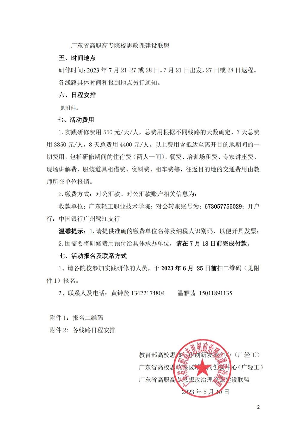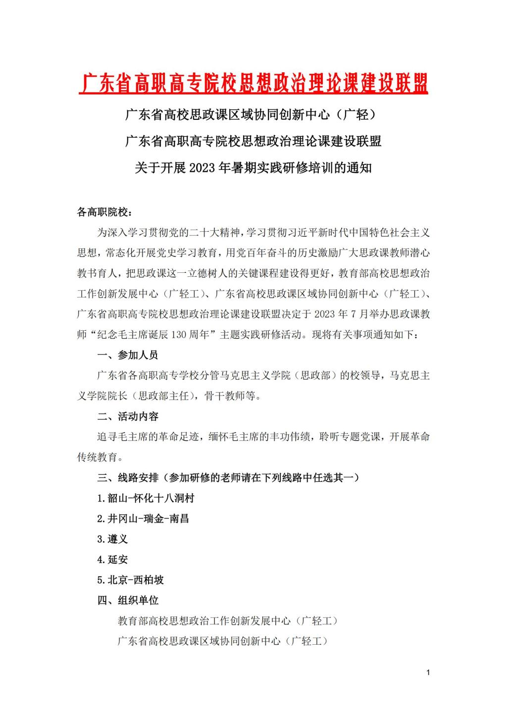 广东省高校思政课区域协同创新中心(广轻) 广东省高职高专院校思想政治理论课建设联盟 关于开展 2023 年暑期实践研修培训的通知