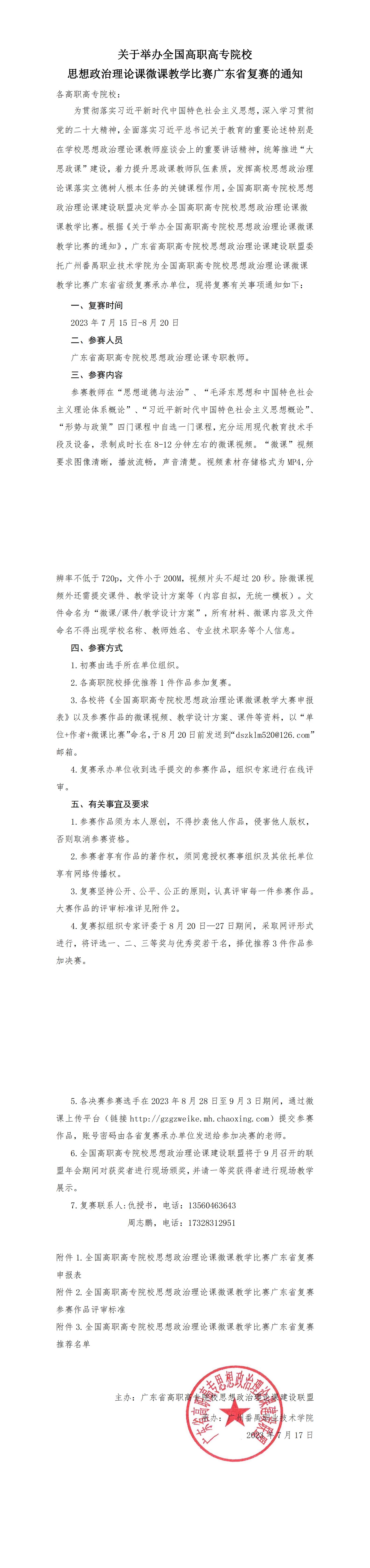 关于举办全国高职高专院校 思想政治理论课微课教学比赛广东省复赛的通知