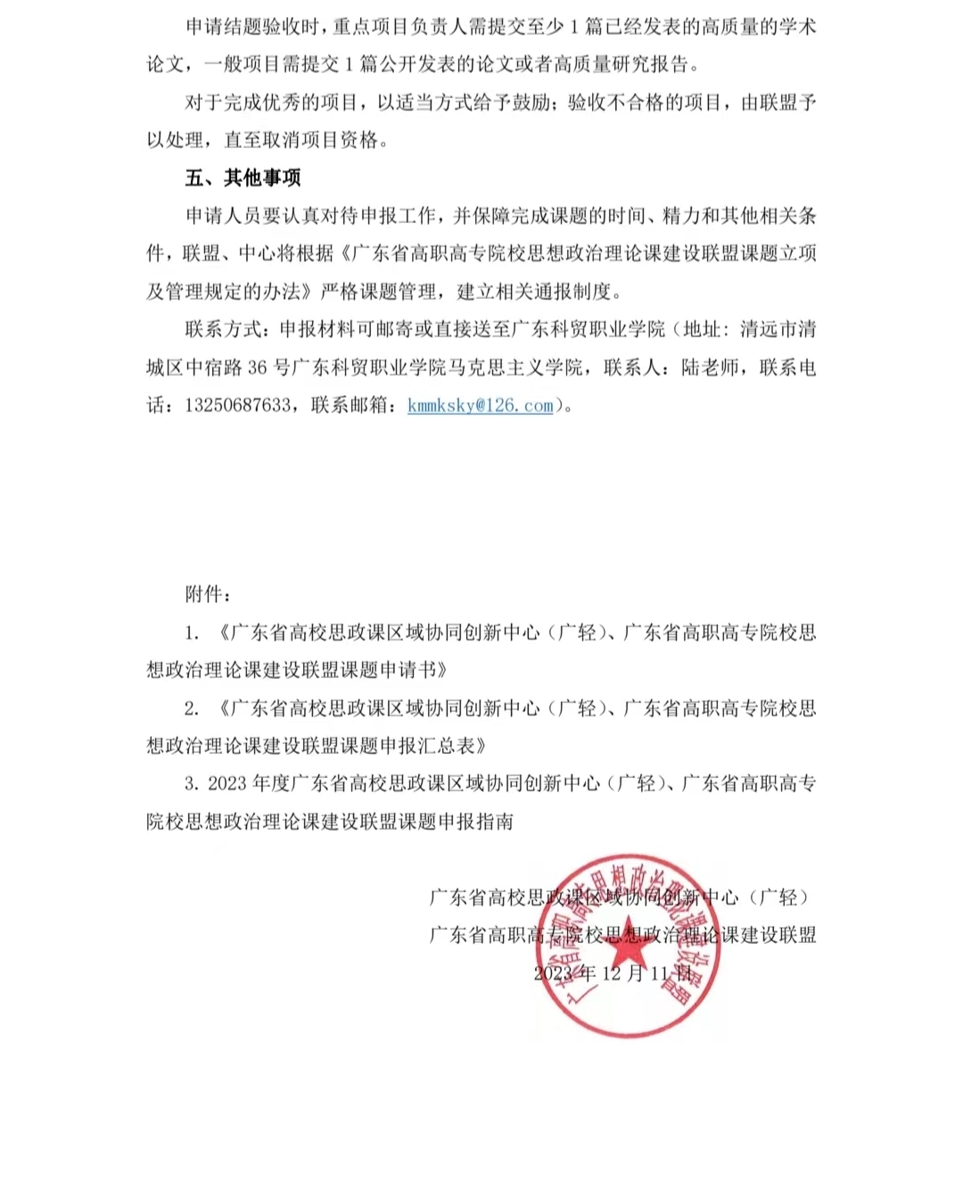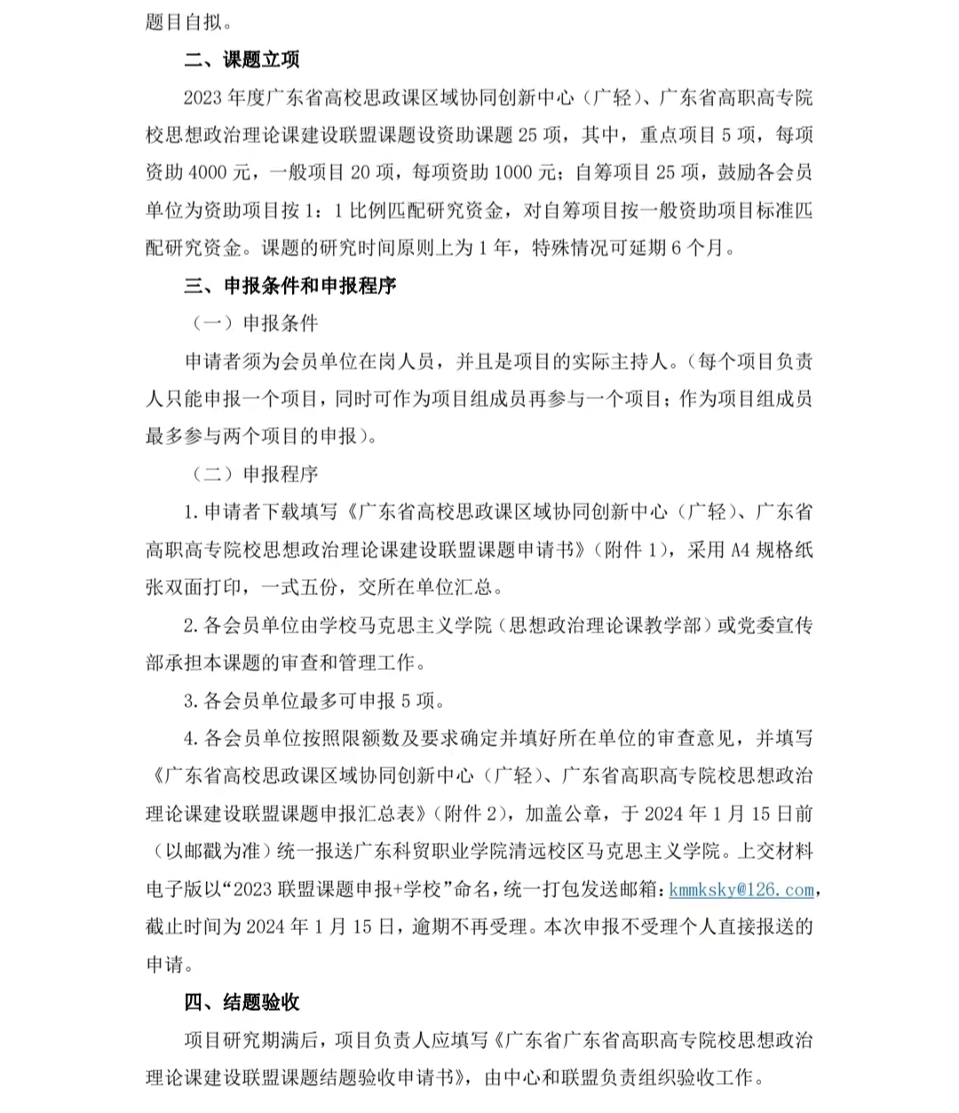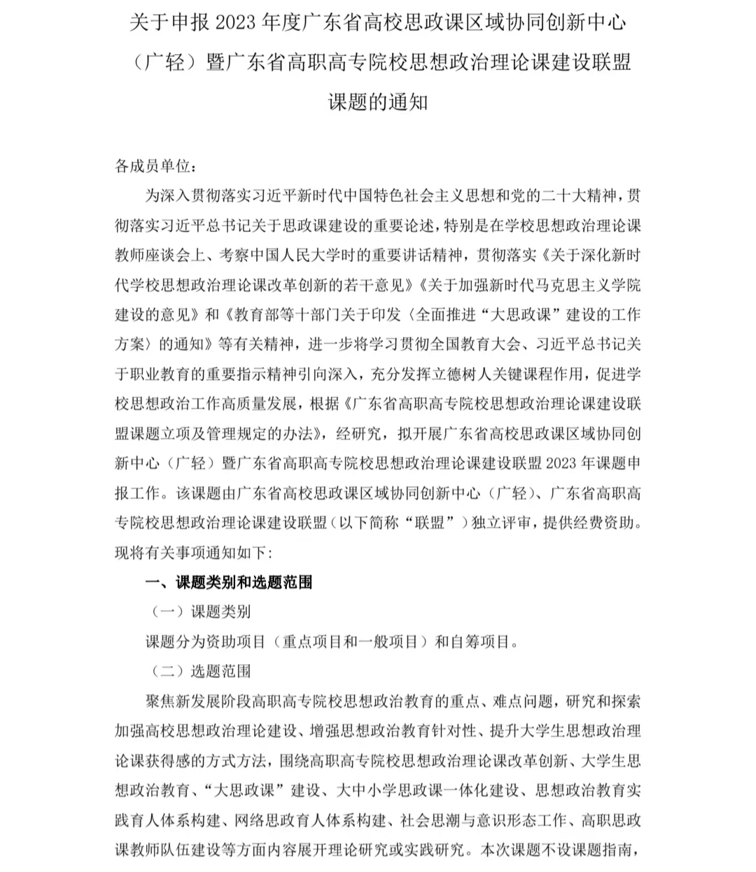 关于申报2023年度广东省高校思政课区域协同创新中心(广轻)暨广东省高职高专院校思想政治理论课建设联盟课题的通知