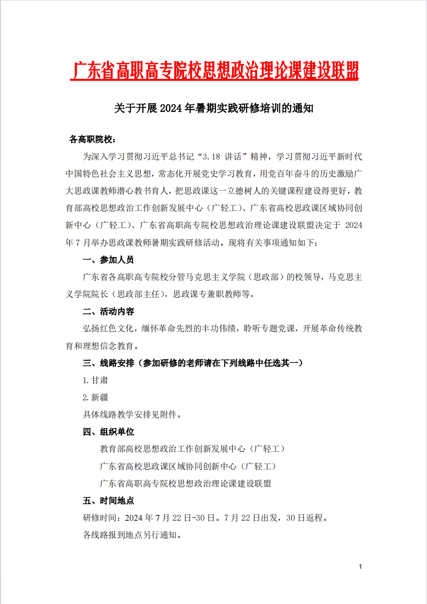 关于开展 2024 年暑期实践研修培训的通知