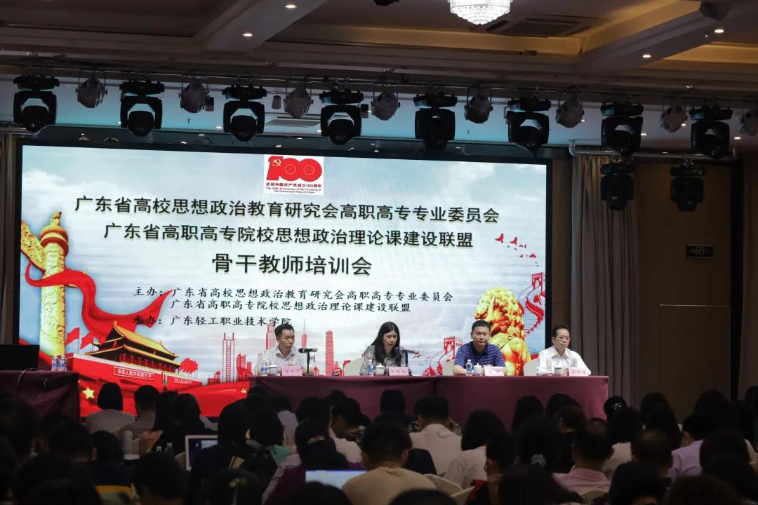 为庆祝中国共产党百年华诞,讴歌党的伟大功绩,学习贯彻习近平总书记在党史学习教育动员大会上的重要讲话精神,做好我省高职高专院校党史学习教育工作,由广东省高校思想政治教育研究会高职高专专业委员会、广东省高职高专院校思想政治理论课建设联盟联合主办、广东轻工职业技术学院承办、“储水江全国高校思想政治理论课名师工作室”协办的全省高职高专院校2021年思政课骨干教师培训会于4月23日至25日在广州顺利举行。来自我省62所高职院校240余名马院院长、思政部主任、思政课骨干教师参会,广东轻工职业技术学院党委副书记梁艳珍、广东财贸职业技术学院副校长张贤基出席开班式,开班式由我校马克思主义学院院长储水江主持。