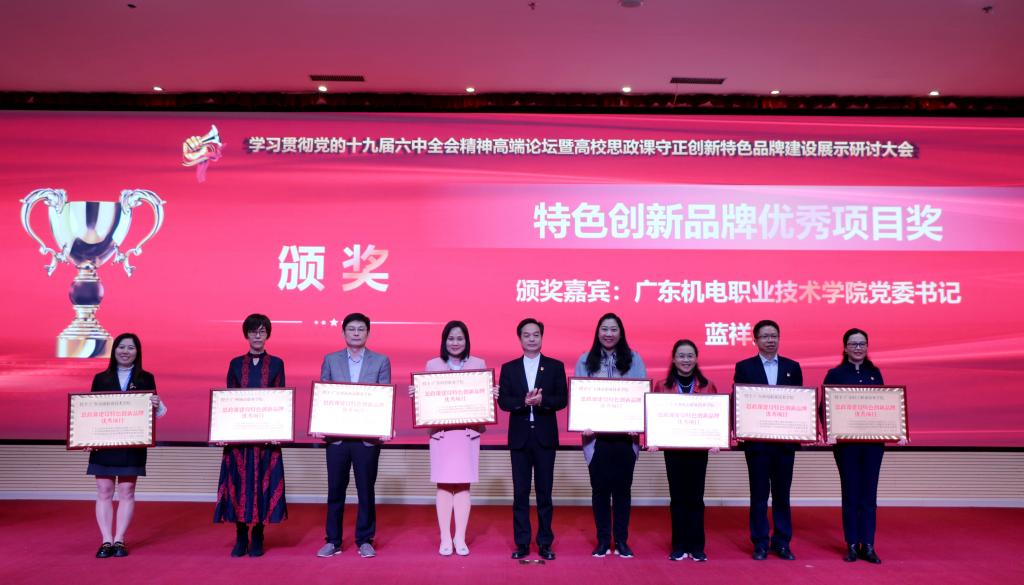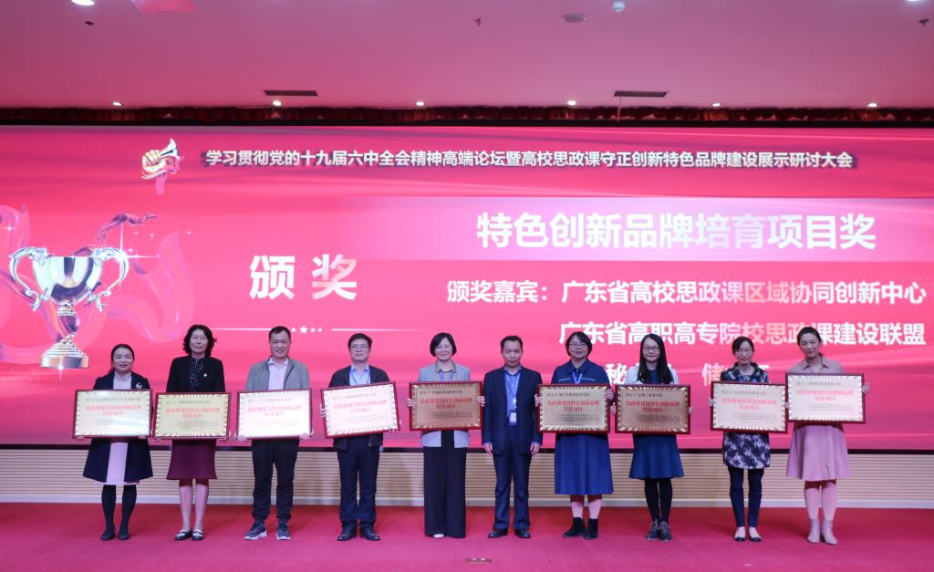 广东省高校思政课区域协同创新中心(广轻工)、广东省高校思想政治教育研究会高职高专院校专委会、广东省高职高专院校思想政治理论课建设联盟近期举办了“思政课建设特色创新品牌项目”评选活动,共计17所高职高专院校报送了其在思政课课程建设、教育教学方法改革创新、项目实践教学等方面的建设成果。评审专家对申报项目给予了高度的评价,对申报院校在探索思政课改革创新方面采取的有力措施,取得的优异成绩,表示了高度的赞赏。本次会议对在此次评选活动中获得荣誉的学校及团队进行了颁奖,我校马克思主义学院副院长蔡小葵代表我校领奖。