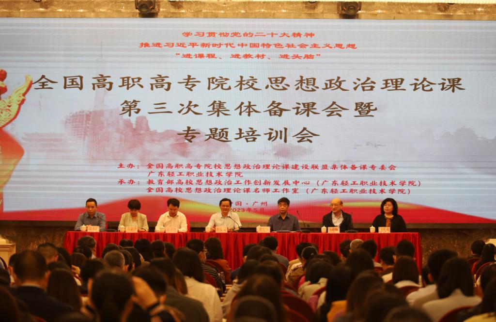 5月11日至14日,全国高职高专院校思想政治理论课第三次集体备课会暨专题培训会在广州顺利举行。会议由全国高职高专院校思想政治理论课建设联盟集体备课会专委会主办、教育部高校思想政治工作创新发展中心(广东轻工职业技术学院)、“全国高校思想政治理论课名师工作室(广东轻工职业技术学院)”承办。来自全国150所高职院校470余名马院院长、思政部主任、思政课骨干教师参加了培训。