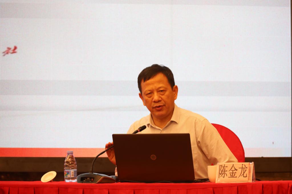 开班式后,华南师范大学马克思主义学院院长陈金龙教授作了题为《中国式现代化理论的建构》的报告。报告由马前锋主持。陈金龙从为什么要建构中国式现代化理论、中国式现代化理论的基本内容、蕴含的世界观和方法论、中国式现代化理论的特征、建构中国式现代化理论的意义以及中国式现代化的研究视阈等六方面抽丝剥茧、层层深入、条理清晰、娓娓道来,系统全面的讲解为参会教师理清了思路,开阔了视野。