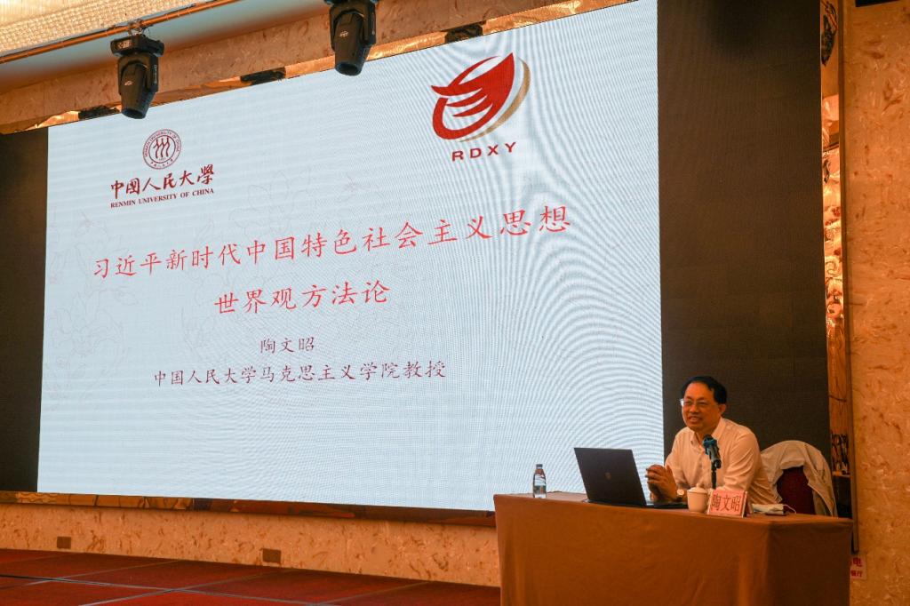 13日上午,教育部高校思政课教指委习近平新时代中国特色社会主义思想分教指委副主任、中国人民大学陶文昭教授作了题为《习近平新时代中国特色社会主义思想的世界观和方法论》的报告。报告由王莉莉主持。陶文昭结合党的十八大以来中央政治局有关集体学习和党的文献汇编指出,掌握马克思主义是中国共产党的看家本领,他围绕“六个必须坚持”,深刻指出要牢牢把握习近平新时代中国特色社会主义思想的世界观和方法论,并就准确理解世界观和方法论的若干问题为参会教师答疑解惑。专题报告集思想性、政治性、理论性、学术性为一体,给予参会教师有益启发和深入思考。