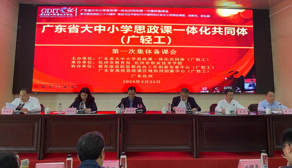 在全国思想政治理论课教师座谈会召开五周年之际,为进一步有效贯彻落实习近平总书记“3·18”重要讲话精神,共同推动大中小学思政课一体化建设,3月22-23日,由广东省大中小学思政课一体化共同体(广轻工)主办,化州市职业技术学校承办,教育部高校思想政治工创新发展中心(广轻工)、广东省高校思政课区域协同创新中心(广轻工)协办的大中小学思政课一体化集体备课会在广东化州举行。本次备课会分为专家讲座、研讨备课和乡村振兴“大思政课”建设调研等环节。