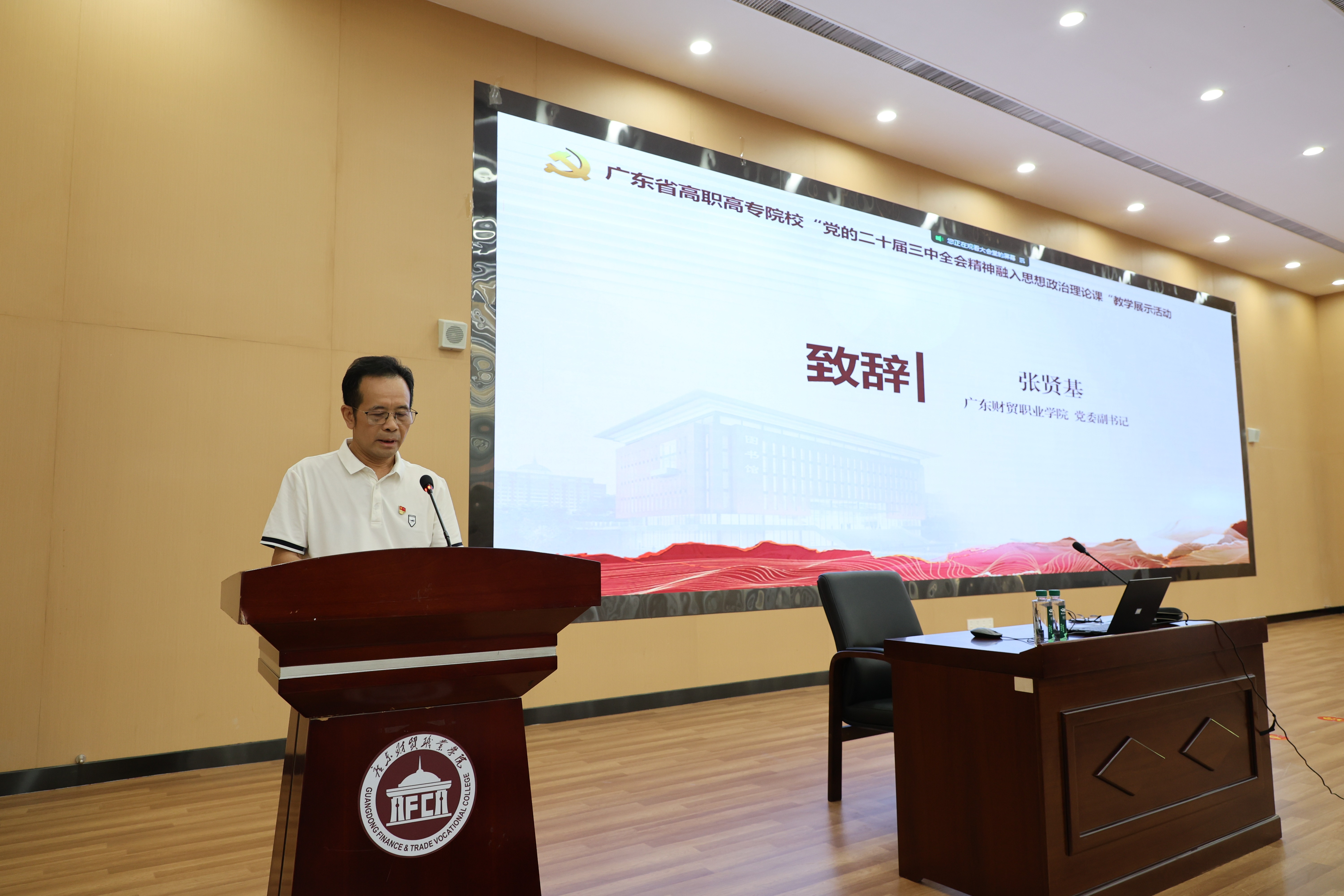 9月21日,省高职高专“党的二十届三中全会精神融入思想政治理论课”教学展示活动在我校举办,省高校思政课区域协同创新中心(广东轻工职业技术大学)、广东省高职高专院校思想政治理论课建设联盟秘书长储水江、我校党委副书记张贤基出席。