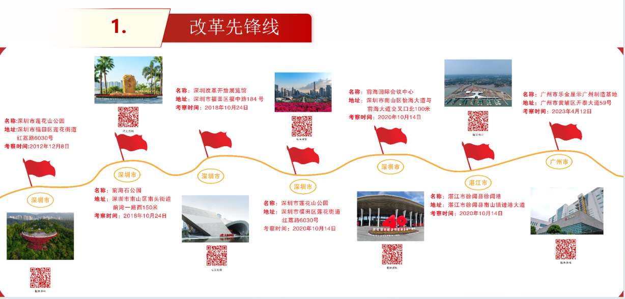1.根据省教育厅规定的六条线路中的40个考察点,各校从中遴选至少1-2个考察点,多选不限,组织本校思政课教师进行现场拍摄;具体线路详见附件1。