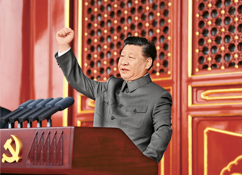 2021年7月1日,庆祝中国共产党成立100周年大会在北京天安门广场隆重举行。中共中央总书记、国家主席、中央军委主席习近平发表重要讲话。 新华社记者 谢环驰/摄