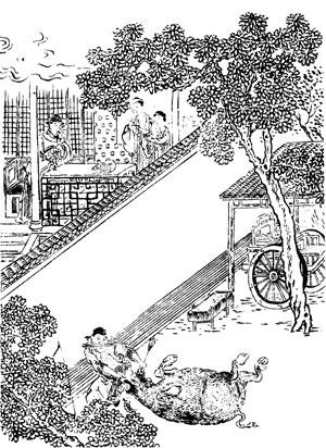 隋朝时候,有一个人叫做牛弘的。他原来本是姓寮,他的父亲名叫寮允,做了后魏国的侍中官,所以皇上赐给他姓牛。牛弘的生平,最喜欢读书。他的见闻又很广博,后来做了吏部尚书。他的弟弟名叫牛弼。有一次,吃醉了酒,竟把牛弘驾车的一只牛用箭射死了。牛弘的妻子去告诉丈夫说,叔叔今天不知道为什么缘故,竟敢把你驾车的一只牛射死了。牛弘听了这种话,不以为意,只冷冷地回答他的妻子道:“做干肉吃好了。”他的妻子又说道:“叔叔射杀了你一只牛,真是大大奇怪的事情呀。”牛弘又回答他道:“我已经晓得了,他的脸色很自然,仍旧读着书不息。”