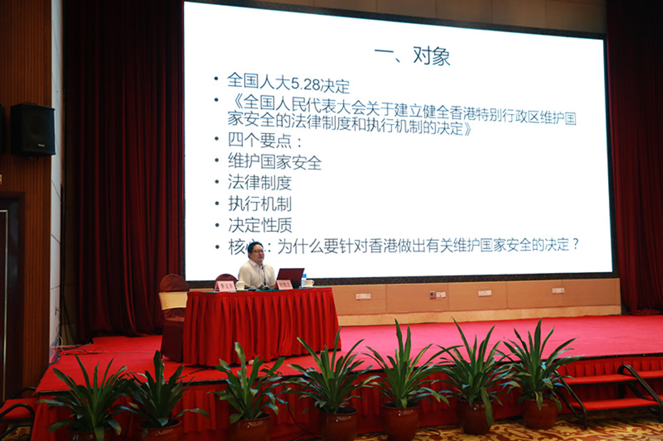 围绕学习贯彻两会精神,大会在学习民法典和涉港国安立法方面精心设计了3场专题辅导。中山大学法学院韩光明副教授围绕“中国民法典:私法宪章”,分别从法典及民法典编撰的意义、民法典编撰的立法过程、民法典编撰中的重大争议问题、中国民法典的结构特点、分编阐释:新规与亮点等五个方面进行了解读。华南师范大学法学院侯巍副教授围绕“中国民法典架构体系与时代特色”,分别解读了《民法典》的制定背景及基本框架、《民法典》的功能与价值、《民法典》的时代特色。两场报告,政治站位高,专业解读强,释疑解惑准,并能够结合现实案例,讲解通俗易懂,具有很强的针对性、指导性、实践性,对我们进一步准确把握《民法典》核心要义、推动民法典贯彻落实具有积极的指导意义,十分有助于教师们备课。5月28日,全国人民代表大会做出“关于建立健全香港特别行政区维护国家安全的法律制度和执行机制的决定(5.28决定)”。培训会专门邀请中山大学粤港澳发展研究院常务副院长何俊志教授围绕这一两会重点话题,就“涉港国安立法”做专题报告,何俊志分别从对象、三条线索、与香港有关的国家安全制度、内容解读、未来展望五个方面对“5.28决定”进行了解读,对教师们理解 “5.28决定”起到了很好的梳理作用,既有理论高度,又有现实指导作用。