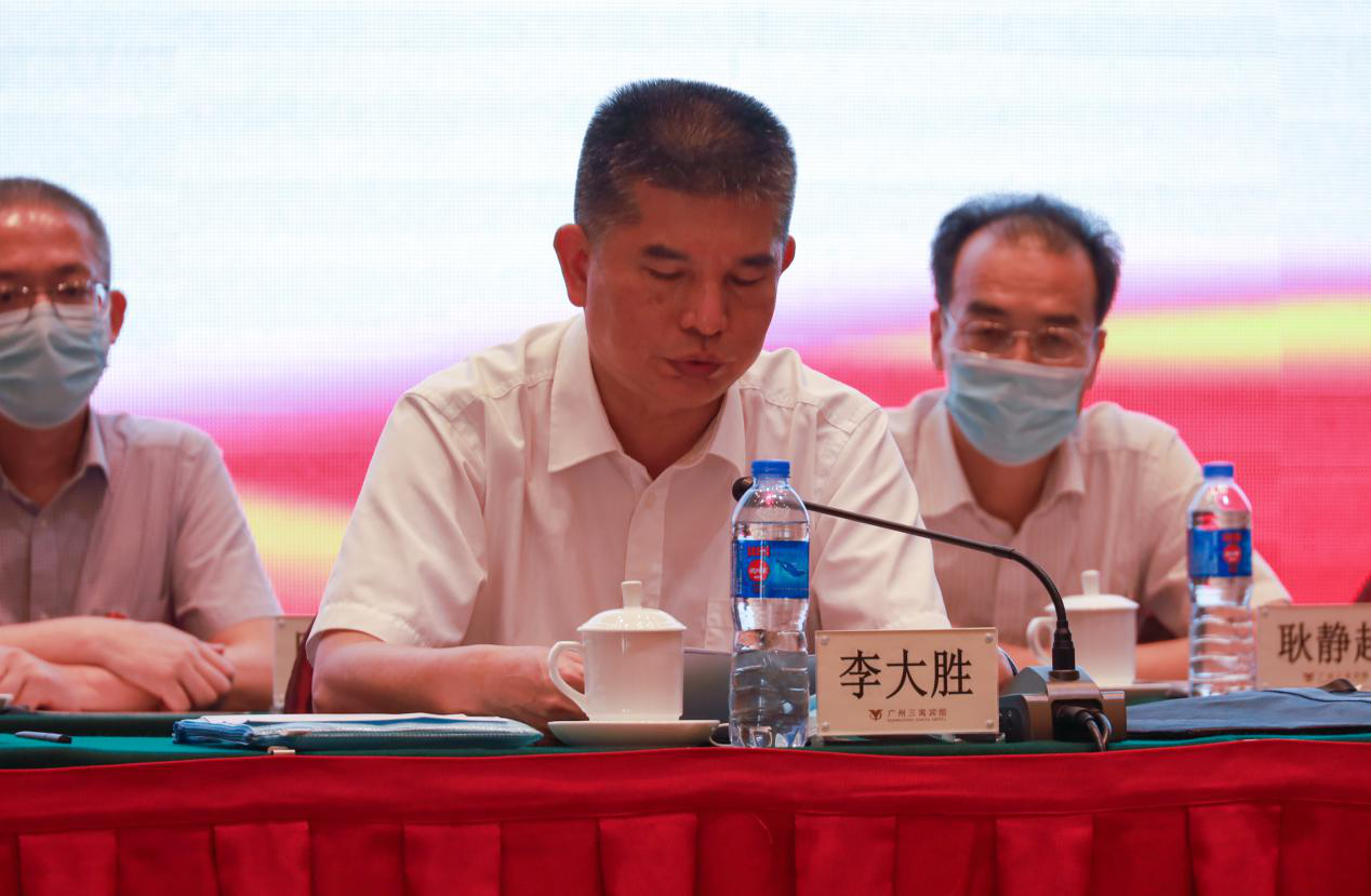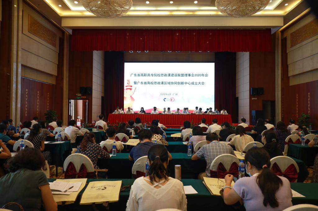 为贯彻落实中共中央办公厅国务院办公厅《关于深化新时代高校思想政治理论课改革创新的若干意见》、教育部《新时代高等学校思想政治理论课教师队伍建设规定》和《深化新时代学校思想政治理论课改革创新先行试点工作方案》,推动我省高校思想政治工作会议精神落地见效,6月19日下午,广东省高职高专思想政治理论课建设联盟理事会2020年会在广州三寓宾馆如期召开。省委教育工委副书记、省教育厅党组副书记李大胜出席会议开幕式并讲话,出席开幕式的领导同志还有省教育厅思政处副处长陈琦、省高校思想政治教育研究会秘书长魏则胜、联盟会长、广东轻工职业技术学院党委书记杜安国,联盟副会长:广东省外语艺术职业学院党委书记卢羡文、广东交通职业技术学院党委书记陈立中、广东机电职业技术学院党委书记蓝祥文、广东水利电力职业技术学院党委书记黄涛、广东邮电职业技术学院党委书记李瑞荣、广东建设职业技术学院党委书记叶飞松、广东职业技术学院党委书记刘科荣、广州科技贸易职业学院党委书记彭华国、广东工程职业技术学院党委副书记方燕、广东环境保护工程职业学院党委副书记李杨红、广东工贸职业技术学院党委副书记夏韩辉、广东食品药品职业学院党委副书记张小红、广州城建职业学院党委副书记鲁岩,联盟理事:广东司法警官职业学院副校长王亮、广东理工职业学院副校长瞿志印、广东财贸职业技术学院副校长张贤基、广东青年职业学院副校长黄洁贞、广州卫生职业技术学院副校长杨翀、汕头职业技术学院副校长方小铁等出席了开幕式。来自全省50多所高职院校、200多名思政课骨干教师参加了培训。会议由广东轻工职业技术学院党委副书记、纪委书记朱其祥主持。