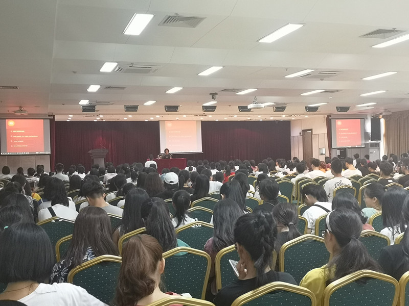 应用外语学院党总支书记景海明从中国共产党的光辉历程、性质宗旨、行动指南等方面,为2019级新生开展爱党爱国教育,鼓励新生坚定理想信念,做有为青年。
