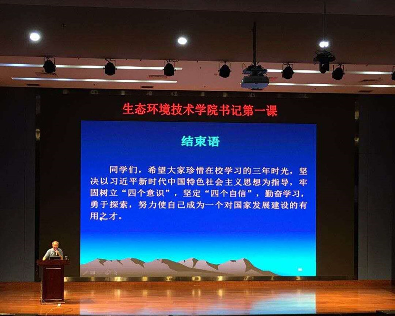生态环境技术学院党总支书记孙林山以“ 大学之道与自我成长”为主题,围绕新时代青年大学生的使命担当,向新生阐述了“何为大学,大学何为”,引导新生明确大学三年的成长成才目标。