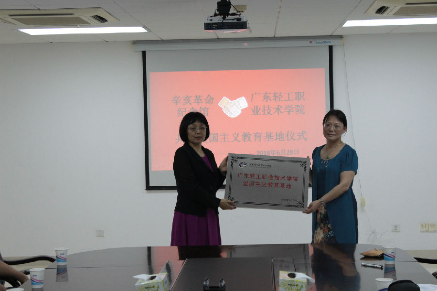 6月28日下午,广东轻工职业技术学院与辛亥革命纪念馆共建爱国主义教育基地签约仪式在辛亥革命纪念馆会议室举行。纪念馆馆长欧阳旦霓亲自出席仪式,马克思主义学院副院长余展洪和党员老师代表,轻化工党支部书记马丽南皆辅导员及高分子联151班师生共约六十人参加了活动。