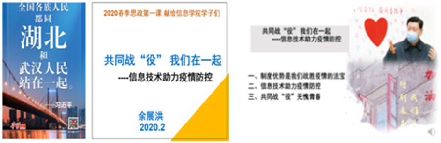 结合专业精准备课,做到因材施教。围绕信息技术在疫情防控中发挥重要作用,概论教研室余展洪老师结合信息学院学生的专业兴趣和特点,围绕大数据、网格化管理、人工智能等方面向同学们介绍信息技术助力疫情防控的重要作用,激发同学们专业兴趣和价值认同,鼓舞同学们刻苦学习专业技能的热情和斗志。高雅老师结合课程要求和学生学习特点,把疫情防控中涌现的感人故事带到了线上课堂。