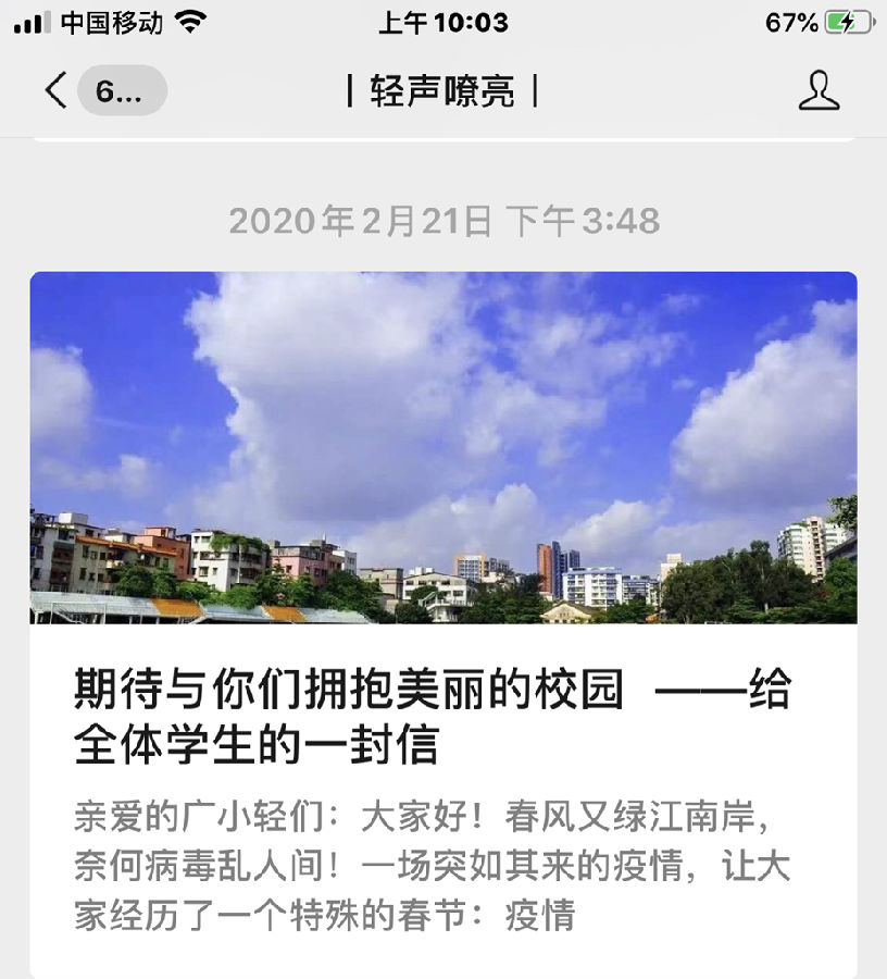 图4:马克思主义学院公众号刊发《给学生的一封信》