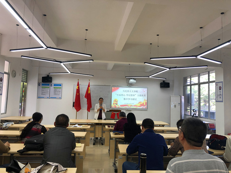 10月29日下午,马克思主义学院在第一实训楼206室召开了“不忘初心、牢记使命”主题教育集中学习研讨活动,重点研学专题:习近平总书记关于初心使命的重要论述。学习活动由党总支副书记余展洪同志主持,全体党员参加了研讨学习。