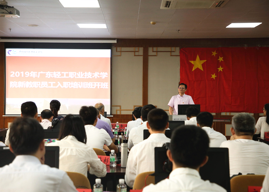 10月21日上午,我校2019年新入职教师培训开班仪式在广州校区第二实训楼806室举行,42名新教师宣誓入职。党委书记杜安国出席仪式并讲话。副校长李丽,相关部门负责人,第五、六批“以老带新”指导教师及新入职教师参加仪式。