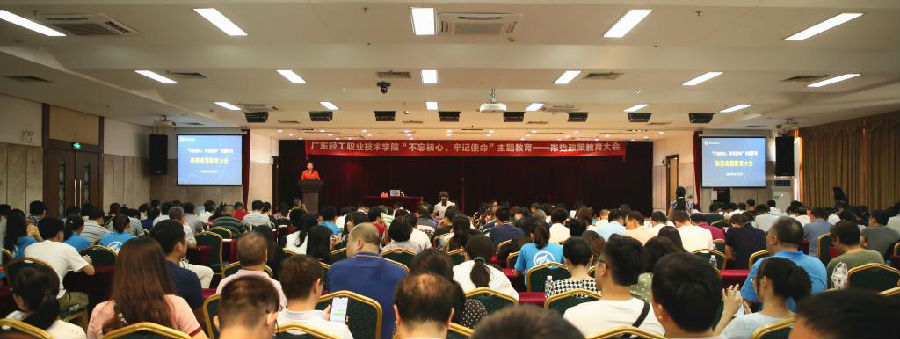 根据“不忘初心、牢记使命”主题教育安排,10月22日下午,我校在广州校区第二工业实训楼903召开形势政策教育大会。校领导杜安国、李铭辉、王玫瑰、李丽、廖俊杰,与全校党员干部、师生党员一起参加学习,深刻认识当前国际国内形势的实质,提高主动应对和化解各种风险挑战的能力,进一步增强“四个意识”、坚定“四个自信”、做到“两个维护”。学校主题教育领导小组常务副组长、主题教育领导小组办公室主任、党委副书记李铭辉主持学习。