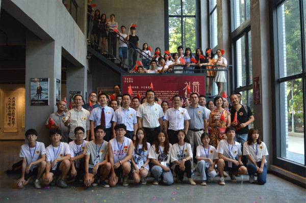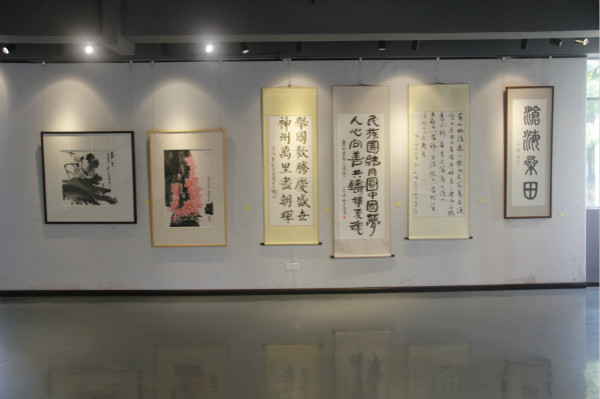 为庆祝中华人民共和国成立70周年,9月29日,由学校党委主办、艺术设计学院承办、各党总支协办的“礼赞祖国、奋进新时代——庆祝中华人民共和国成立70周年”书画摄影展暨艺术设计学院课程思政成果展在敬师楼隆重开幕。学校党委书记杜安国、党委宣传部部长黄华、艺术设计学院党总支书记李宽松、院长桂元龙等领导出席开幕式。开幕式由艺术设计学院副院长徐禹主持。