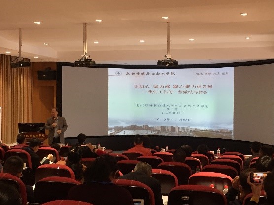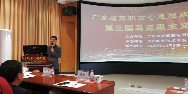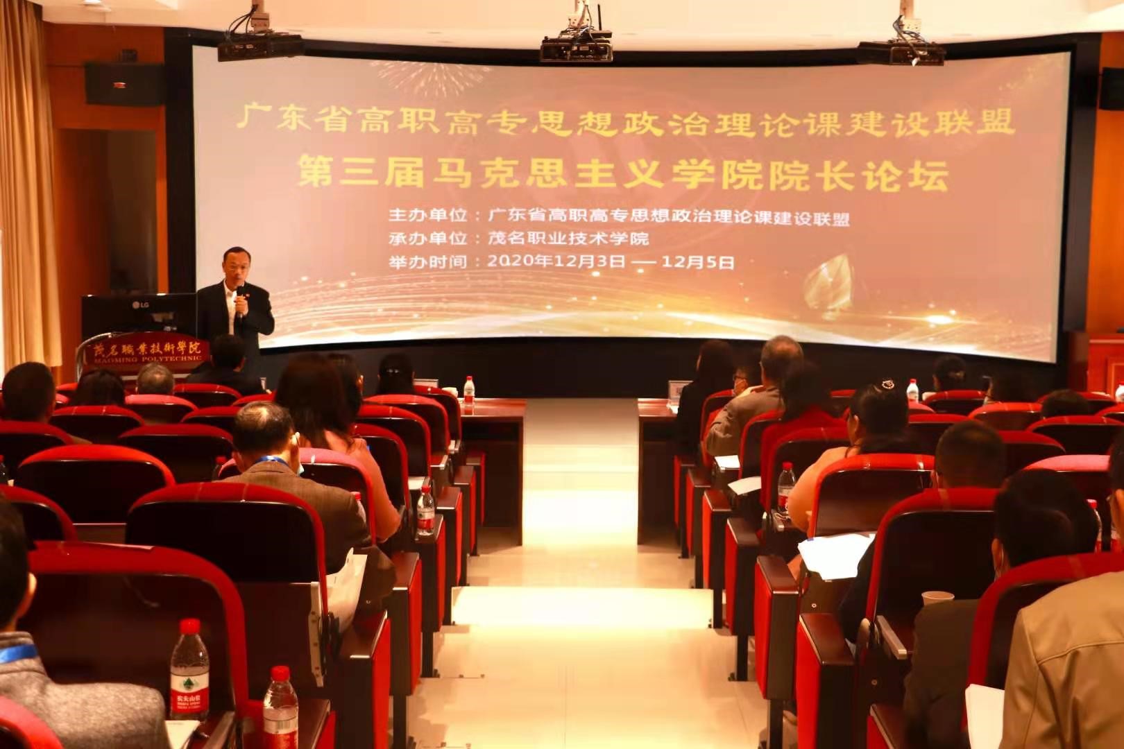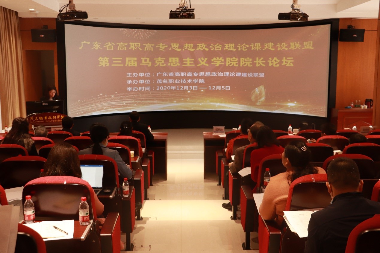 为贯彻落实习近平总书记在学校思想政治理论课教师座谈会上的重要讲话精神,加快广东省高职高专院校思想政治理论课建设,12月4日,由广东省高校思想政治研究会高职高专专业委员会、广东省高职高专院校思想政治理论课建设联盟主办的广东省高职高专院校第三届马克思主义学院院长(思政部主任)论坛在茂名职业技术学院举行。茂名职业技术学院党委书记高鹏、广东轻工职业技术学院党委副书记梁艳珍出席论坛并在开幕式上作讲话,来自全省50多所学校的马院院长、思政部主任参加论坛。开幕式由茂名职业技术学院党委办公室主任莫明波主持。