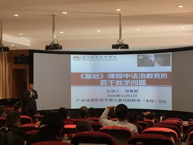 高鹏在致辞中介绍了茂名职业技术学院思政课建设和教育教学改革方面积累的经验和取得的成效。梁艳珍围绕本次论坛的主题,在讲话中谈了思政课课程建设的内涵和途径。