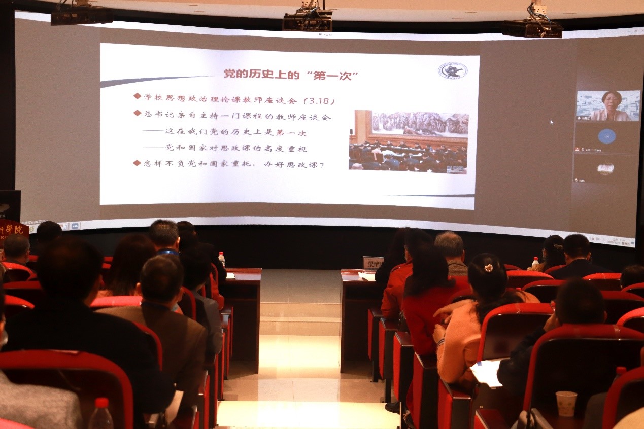 论坛特邀中央财经大学马克思主义学院院长冯秀军教授以视频的形式,作《新时代高校思政课教学改革的思考与探索》主题报告,她从思政课怎么看、思政课怎么教、好团队怎么建三方面,讲述在中国面临百年未有之大变局的形势下加强思政教育的重要意义,指出思政教育要坚持守正创新,饱含热爱、敬畏、使命的情怀,正确看待教育中的问题,加强深度教学研究,坚守课堂的思想理论品质,坚守课堂讲授的主阵地,打造有灵魂、有风骨、有血肉的高质量的思政课。