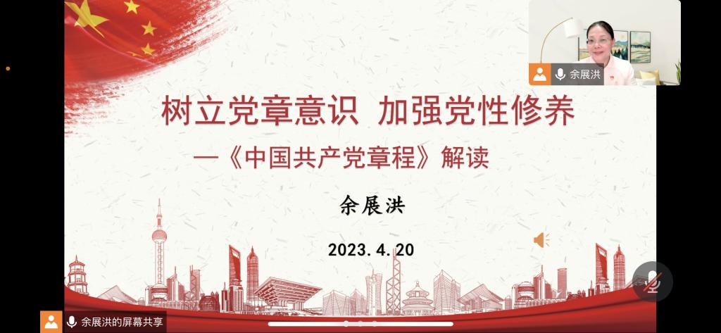 4月20日晚上,广东轻工职业技术学院马克思主义学院党总支负责人余展洪教授以线上课堂方式,为我校机关一党总支第39期入党积极分子培训班讲授党课。姜洋洋、黄新辉、刘琼阳、吴盼盼、刘诗佳老师参加了学习培训。本次党课主题是学习党的二十大党章。