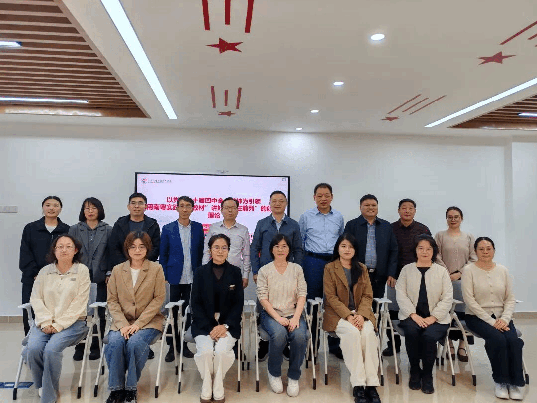 为深入学习贯彻党的二十届四中全会精神,落实《教育部办公厅关于开展2025—2026学年高校思政课课堂教学提升行动的通知》《广东省教育厅关于开设“走在前列的广东实践”高校精品思政课程的通知》要求及省委教育工委书记、省教育厅厅长林如鹏“将习近平总书记在广东视察足迹转化为课程化、可视化、体系化教学资源”的指示精神,11月27日,广东交通职业技术学院马克思主义学院与广东建设职业技术学院马克思主义学院联合举办“走在前列的广东实践”课程备课会,广东建设职业技术学院、广东财贸职业学院、广东碧桂园职业学院、广东交通职业技术学院的领导及骨干教师齐聚广东交通职业技术学院清远校区求是楼402,共话思政课教学创新,共谋“走在前列”实践转化。
