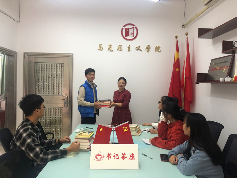 本次“书记茶座”围绕本学期主题教育活动之促进学生社团成长工作开展以来的情况总结为主题。座谈会上,余副书记首先和同学们分享了学院党总支今年以来在促进我学院学生社团发展方面所做的系列工作,总结了所取得的进步,也对在座学生骨干提出了不忘社团成立伊始的初心使命,积极主动承担起社团工作的殷切期待。接着,各位同学纷纷发言,畅谈了社团本学期活动开展成效,也提出了促进今后车团成长的一些合理意见建议。最后,余副书记向三个社团赠送了我院教师党员在主题教育期间“做一次志愿活动”而捐赠的书籍。