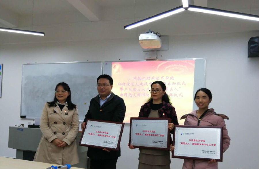 2019年1月16日下午,马克思主义学院在广州研练中心206室举行了学校标杆党总支建设项目全面启动暨“双带头人”教师党支部书记工作室授牌仪式。授牌仪式由马院院长储水江教授主持。