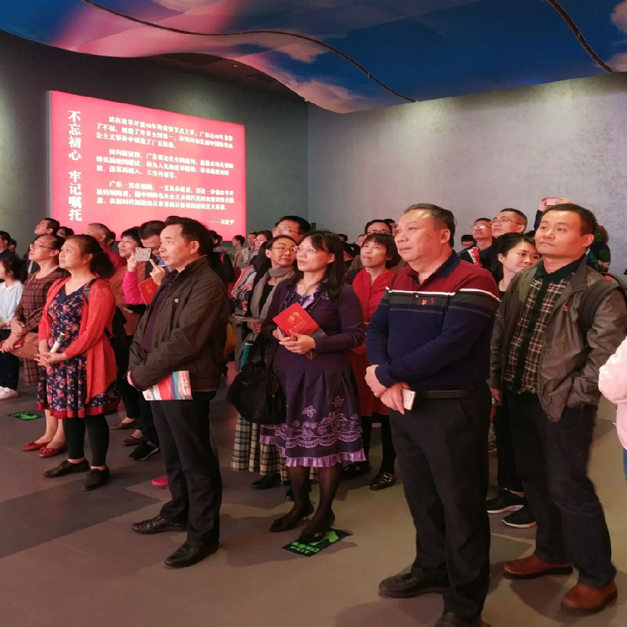 在展馆解说员的带领下,马克思主义学院的党员老师们先后参观了“敢为人先,勇立潮头”、“增创优势,砥砺前行”以及“走在前列,当好窗口”三个展馆,展馆内运用照片、实物、视频、模型、场景、高科技手段、互动体验项目等,让我们深刻了解到拥有独特人缘地缘优势和“跟为人先”文化基因的广东是在何种背景下先行一步,率先创办经济特区的,后续又是如何引领广东改革开放增创新优势,并且一直奋力在新时代改革开放的伟大征程中走在全国前列等等。