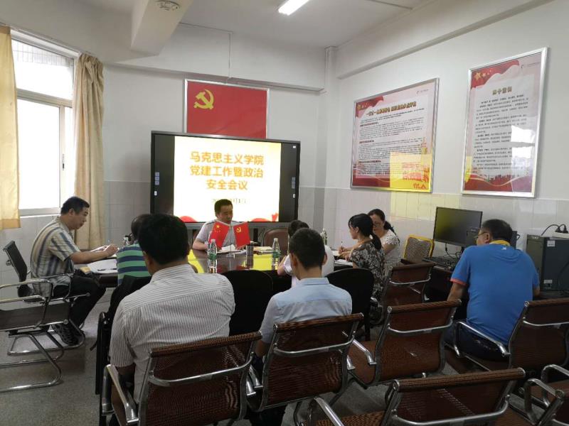 为进一步学习贯彻落实习近平总书记系列重要讲话和党的十九大精神,牢固树立“四个意识”,坚决维护意识形态安全和政治安全,切实加基层党组织建设,9月1日上午,马克思主义学院在301会议室召开了党建工作暨政治安全工作会议。会议由主持工作李宽松副院长主持,全体院领导、党总支委员、支部委员和业务科室负责人参加了会议。