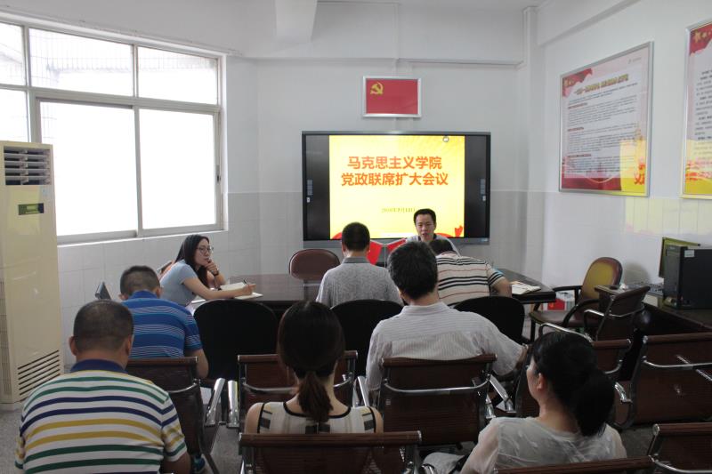 2018年7月13日,马克思主义学院在广州校区教学楼301召开了党政联席扩大会议,会议由学院主持工作副院长李宽松主持,学院副院长余展洪、工会主席、党总支委员、支部书记、教研室主任以及办公室人员参加了会议。会议通报了近期工作情况,强调了工作纪律与团队合作精神,并对学校党代表大会、党建氛围建设、研练中心建设、思政第一课、理论宣讲、征文、教学、暑期社会实践活动等工作进行安排部署。