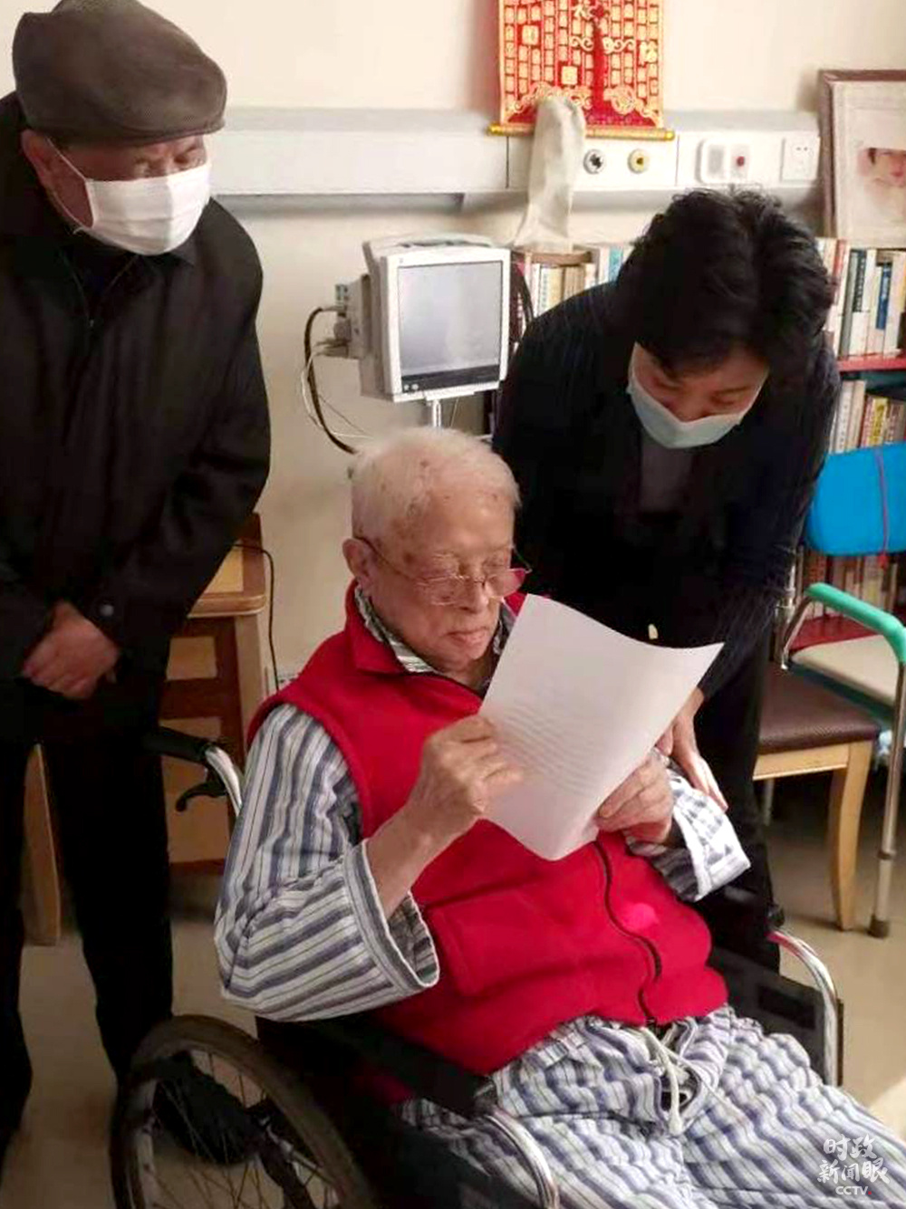 2月18日,习近平总书记给上海市新四军历史研究会的百岁老战士们回信,感佩他们期颐之年仍心系党史宣传教育。新四军老战士施平是40余位写信人之一。(上海市新四军历史研究会供图)